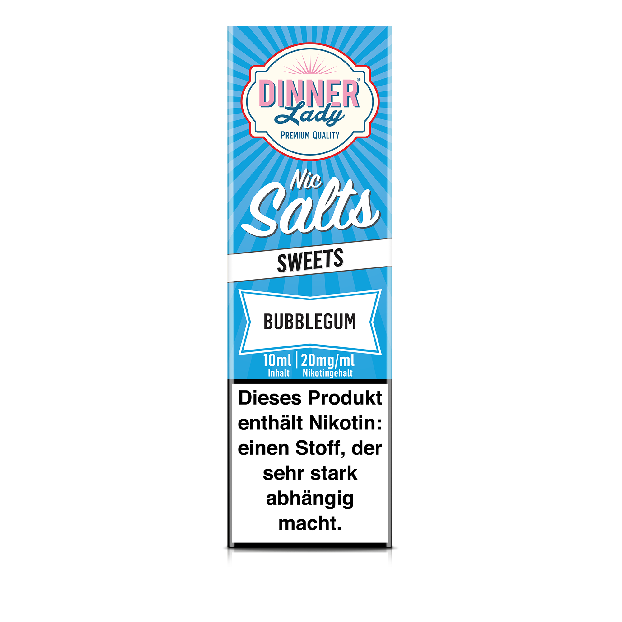 Verwandle das Dampfen in ein unvergessliches Erlebnis mit dem Bubblegum Nikotinsalz Liquid von Dinner Lady - süßer Kaugummigeschmack wie aus der Kindheit!